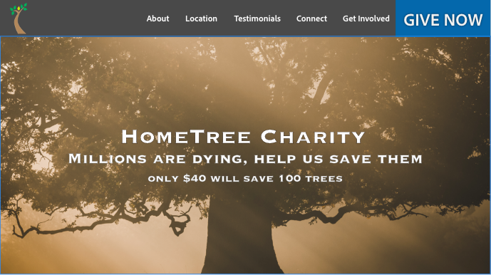 An example website for a non-profit organization with donation options.